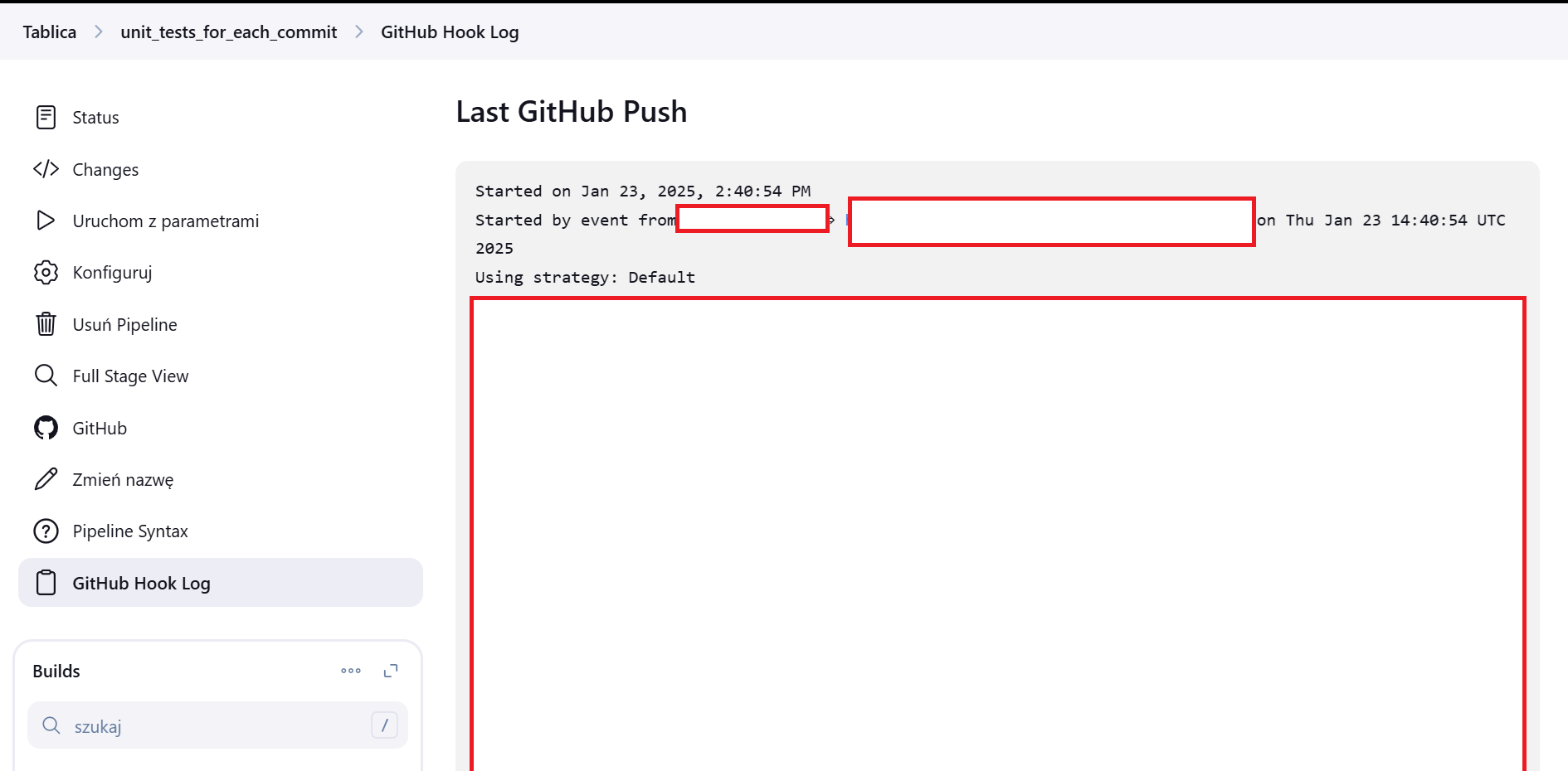 Check if the job you configured has been triggered automatically by the GitHub webhook.